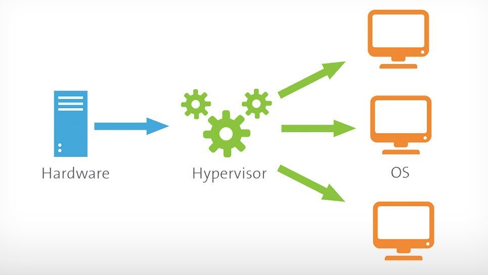 - The hypervisor is an Operating System which manages access to the physical hardware for each Virtual Machine.